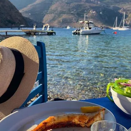De gesitueerde in Pórto Káyio Lithos Porto Kagio Villa bevindt zich op 1 km van Marmari beach en beschikt over een terras met uitzicht op de zee.